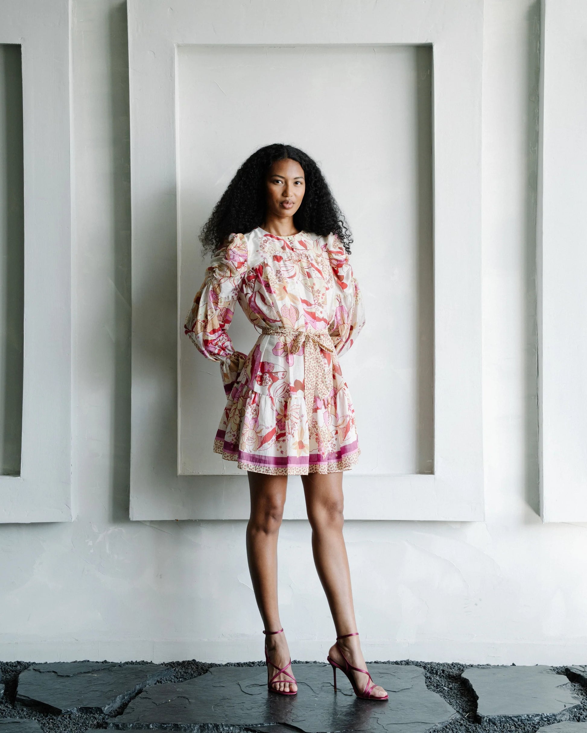 Fresh and feminine, the Adele Floral Print Mini Dress is designed for an effortless impact. Featuring a pink floral print elevated by soft ruched sleeves that add texture and romance. It's lightweight and comfortable making it perfect for warm days and date nights. Pair it with strappy sandals for daytime polish or elevate the look with boots and statement accessories for a chic night out.
