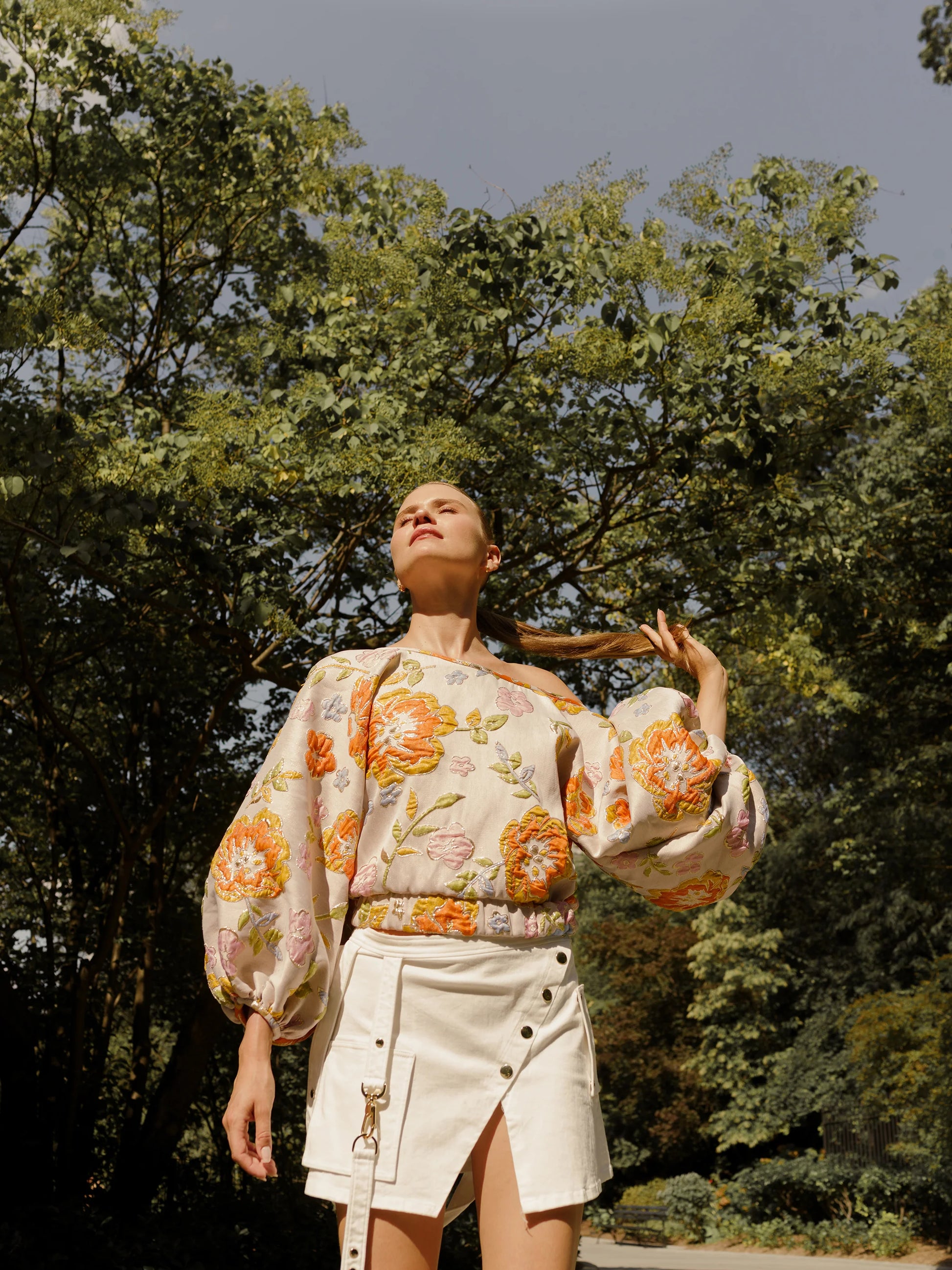 Talk about making a Statement! We turned our iconic Good Luck Dress into a Top and Just WOW! Featuring Dramatic Oversized Sleeves and Elastic Waistband. So Many Styling Options!
