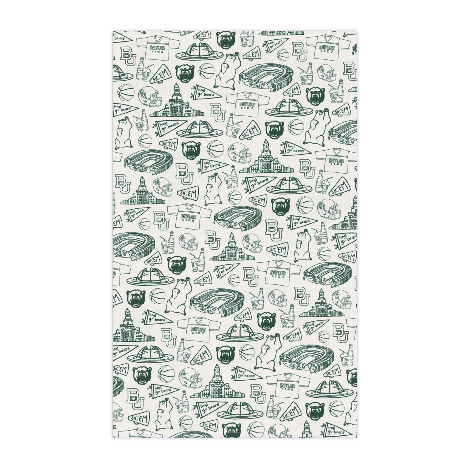Officially licensed cotton kitchen towel featuring hand-drawn Baylor University collegiate graphics