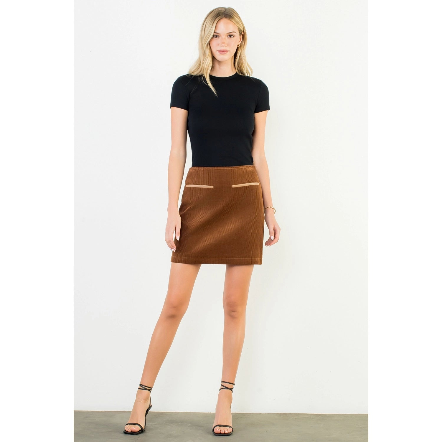 High Waist Corduroy Mini Skirt - Brown