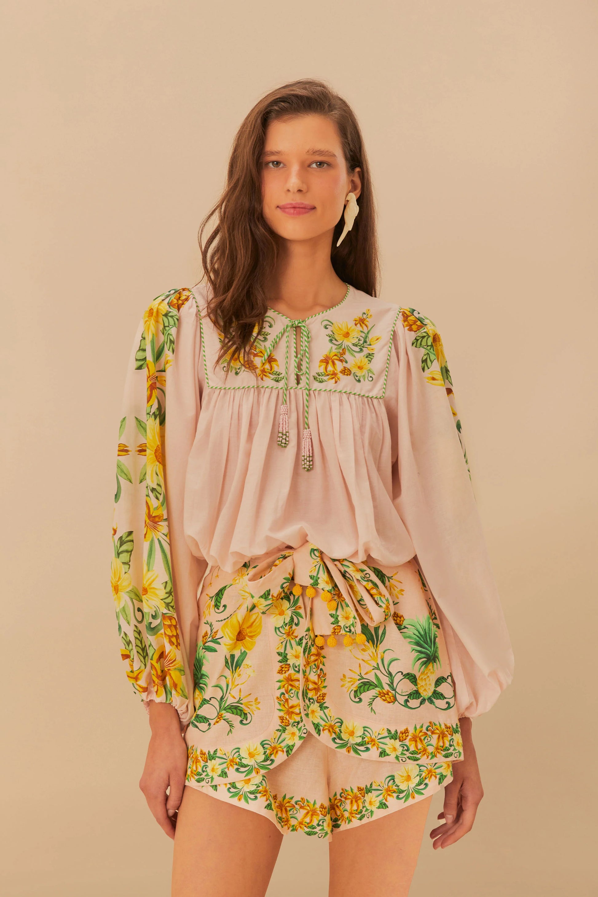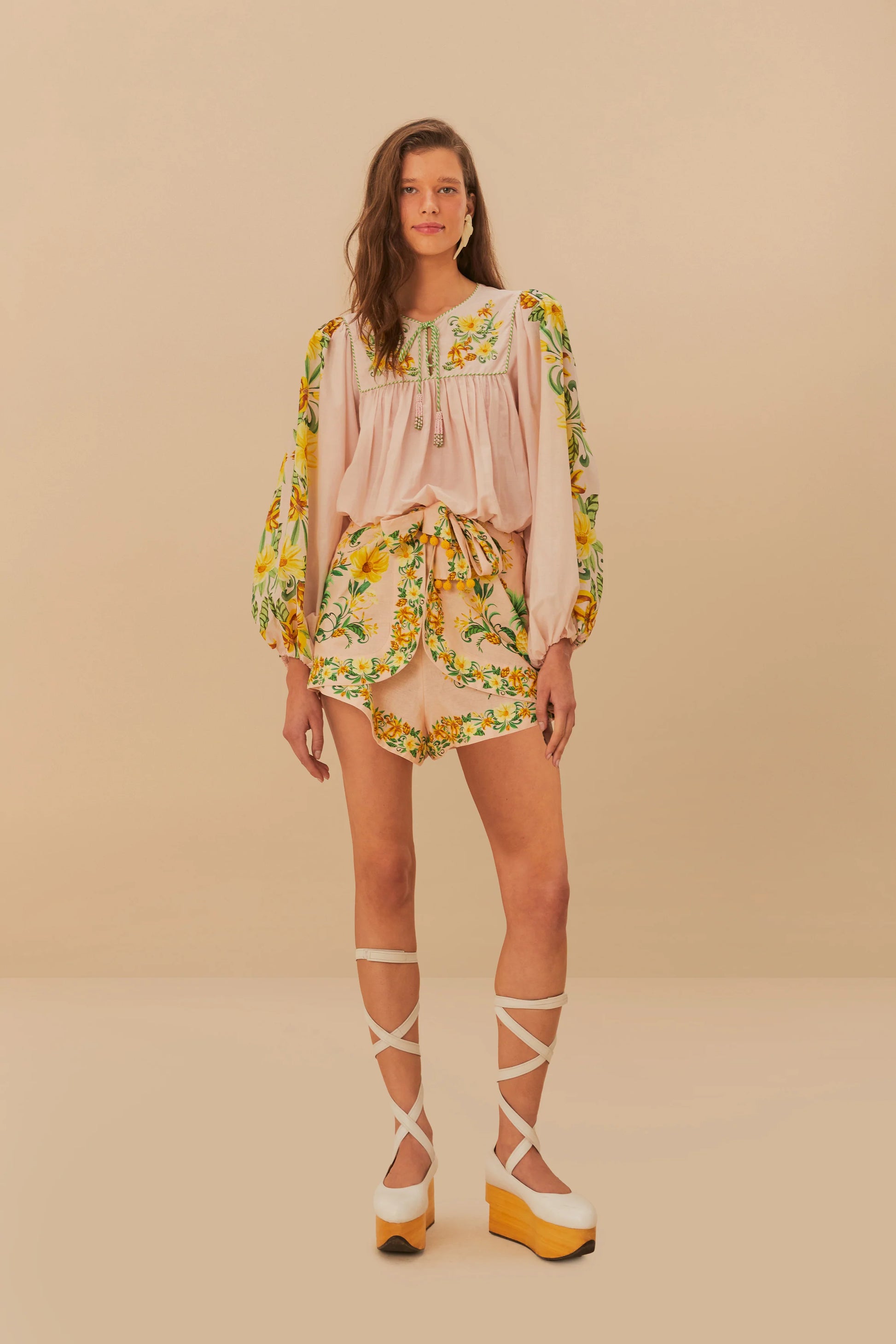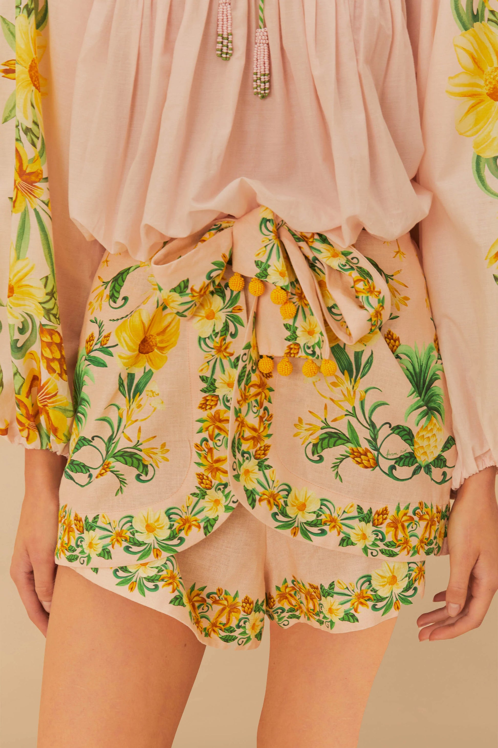 Unveil joy with the Pink Botanical Beauty LENZING™ ECOVERO™ Euroflax™ Shorts. This enchanting piece features vibrant botanical prints bursting with lively yellows and greens, set on a soft pink canvas. The playful wrap-around tie detail adds a touch of elegance and whimsy. Crafted from responsible materials, these shorts blend style with a gentle nod to thoughtful fashion, inviting a refreshing breeze of nature into your wardrobe. LENZING™ ECOVERO™: the eco-responsible fibers generate up to 50% lower emissions and water impact compared to generic viscose.