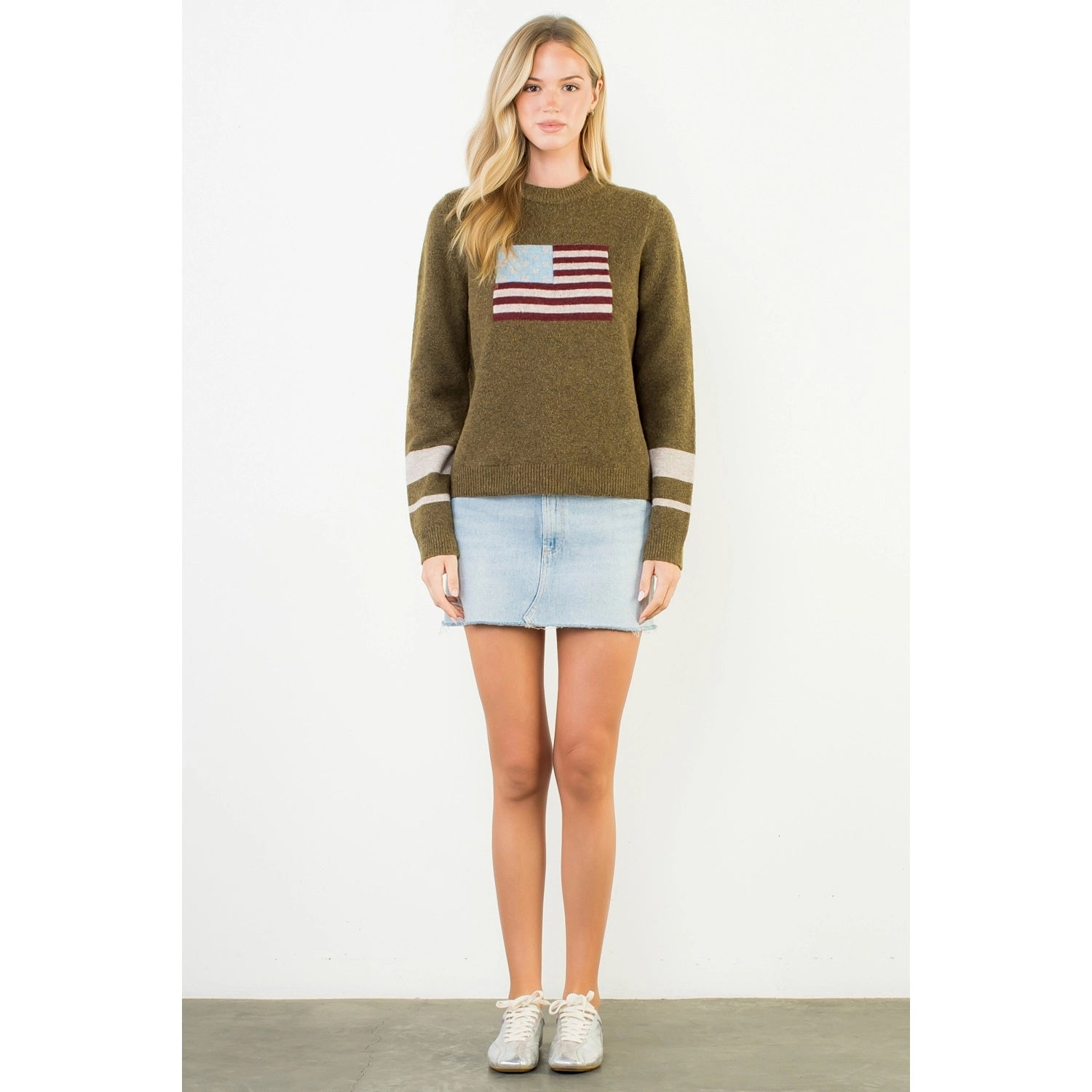 Knit Flag Detailed Sweater - Olive