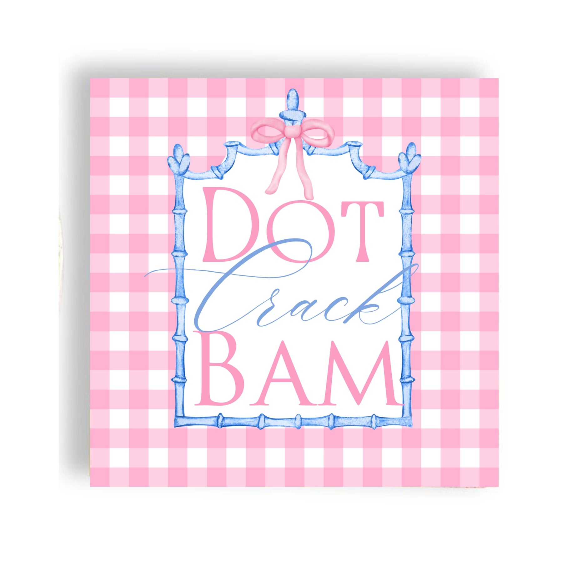 - Pink gingham background with bamboo frame + Mahjong motif