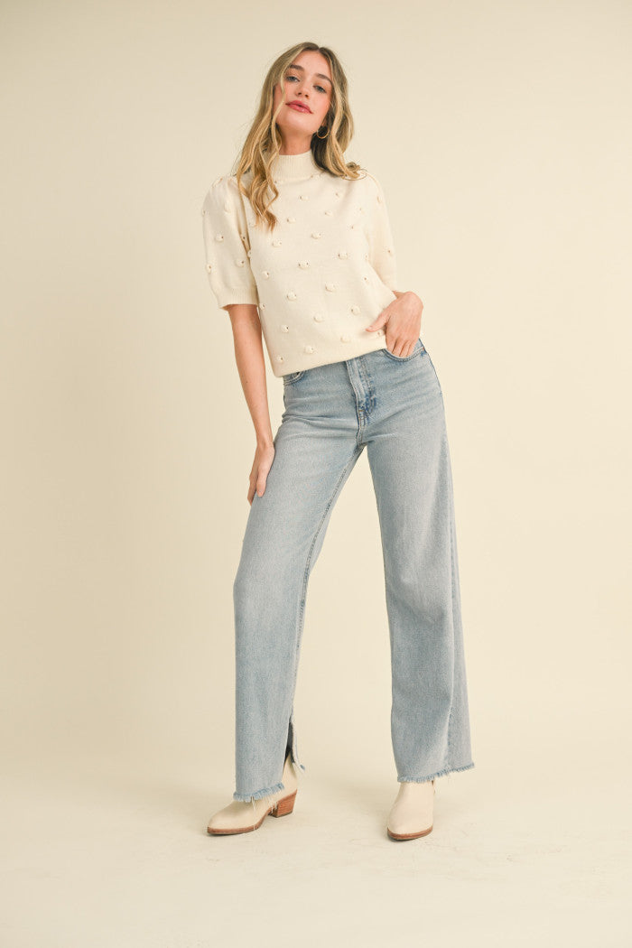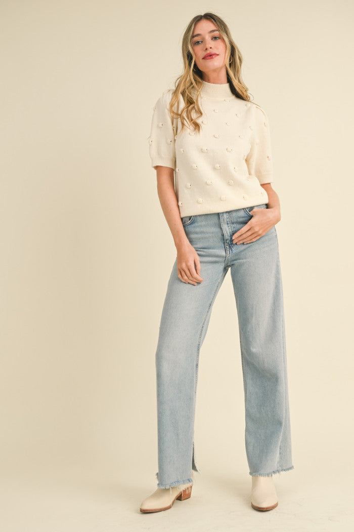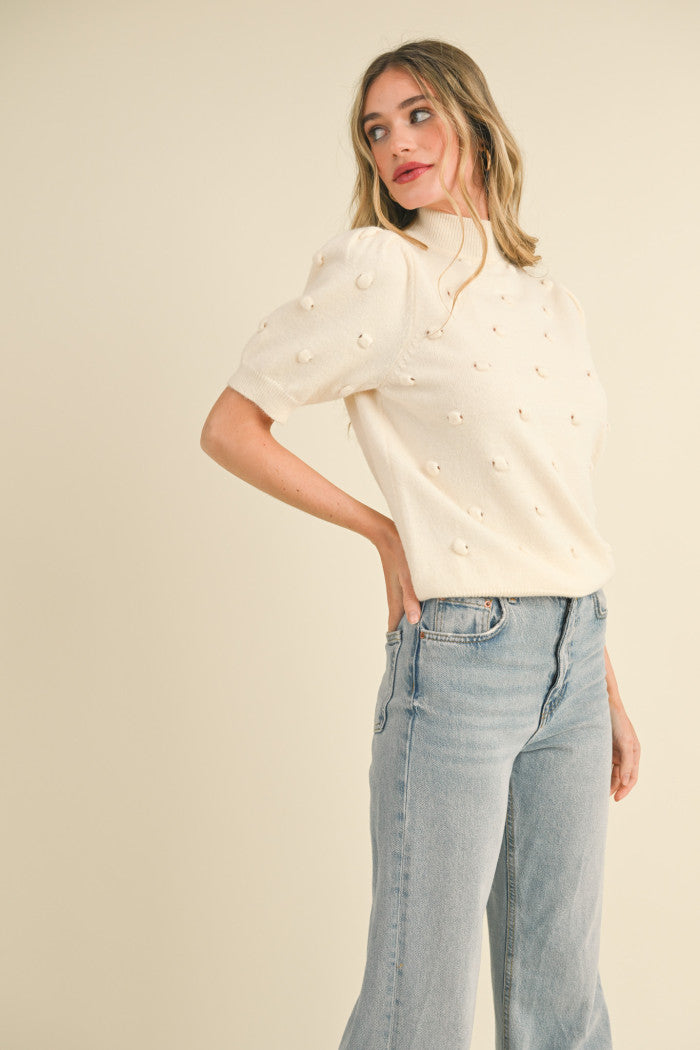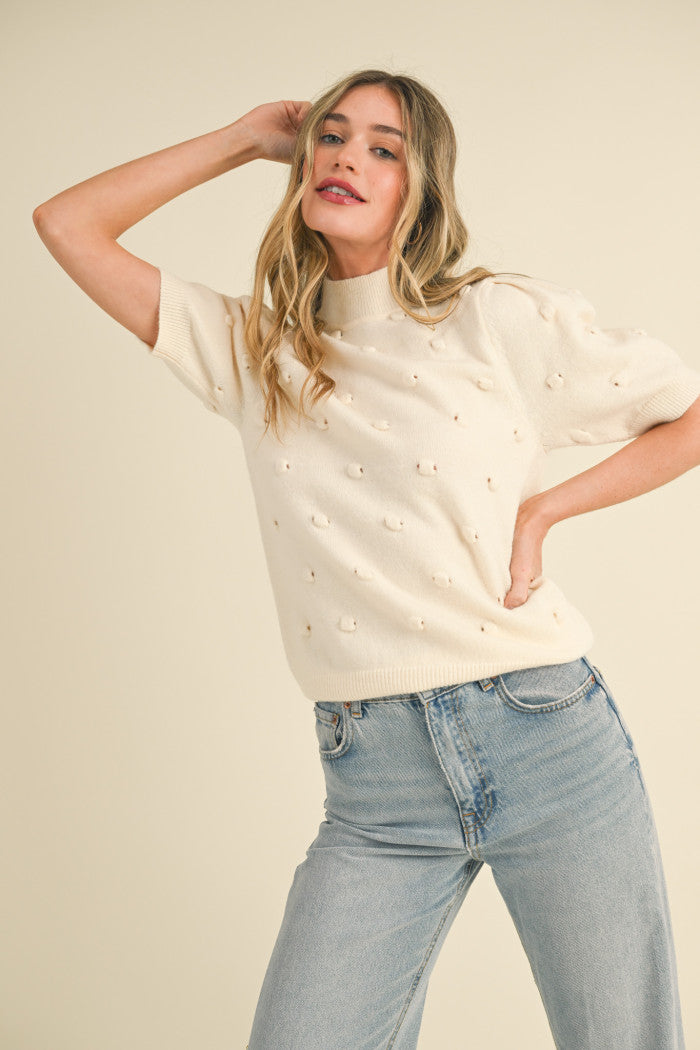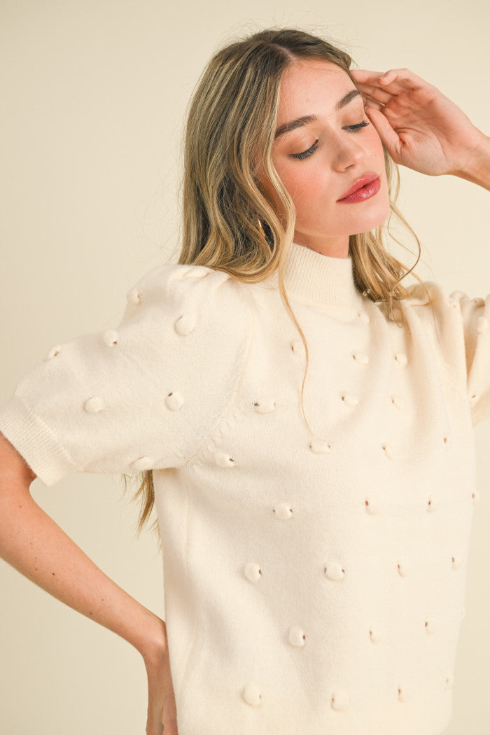 Popcorn Knit Short Sleeve Sweater - Ivory