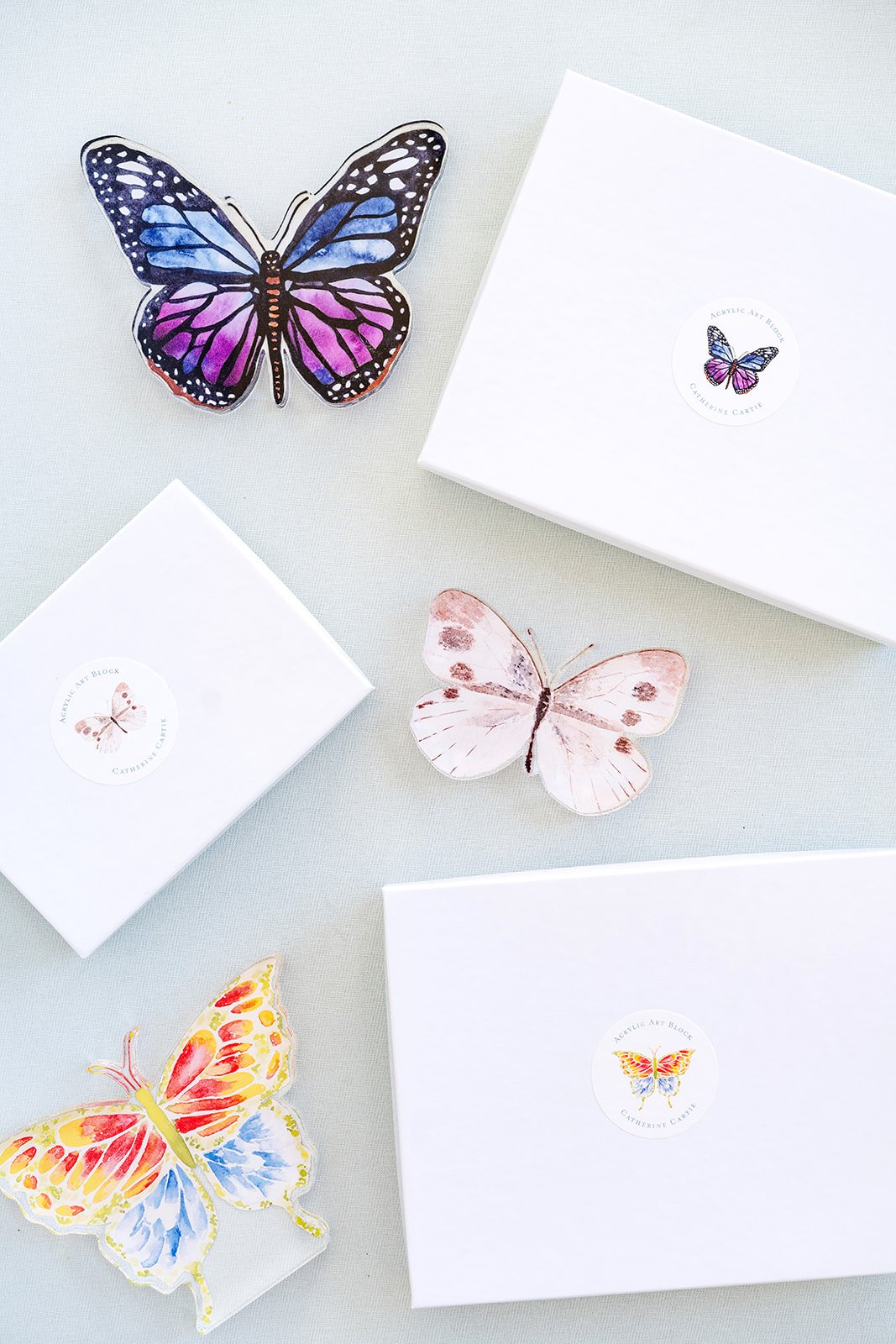 Small measures approximately 4” × 3”, ½” thick acrylic.