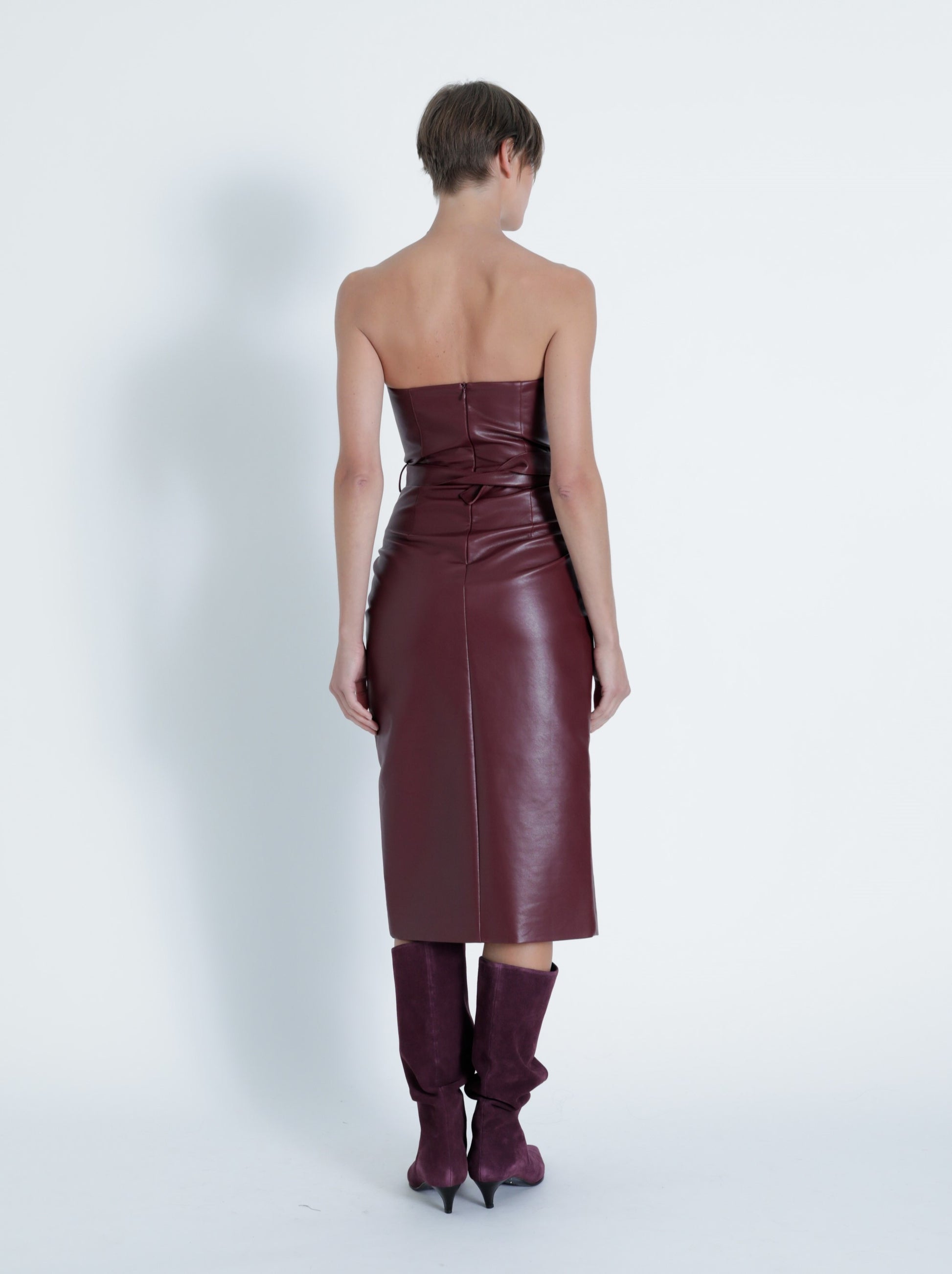 Samantha Strapless Vegan Leather Midi Dress - Malbec
