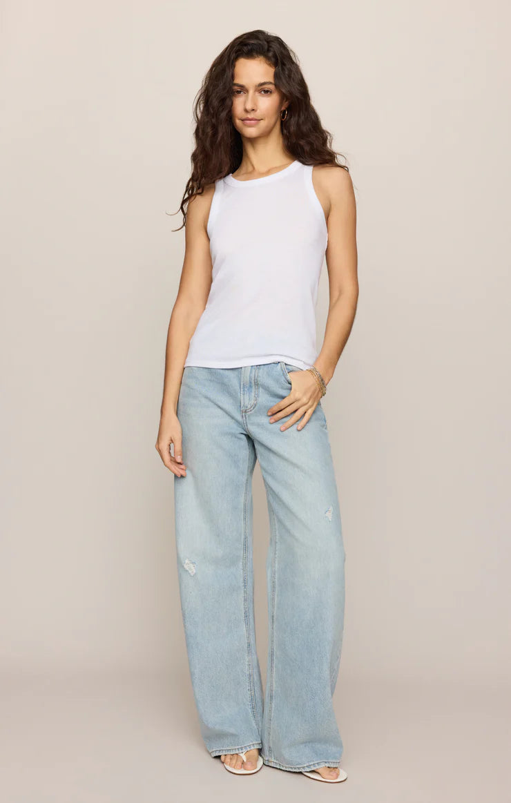 Laid-back and made for easy days, this relaxed tank is crafted from breathable loose knit jersey. With a classic crew neckline, bra-friendly wide straps, and a tuckable fit, it’s the kind of essential you’ll reach for on repeat.