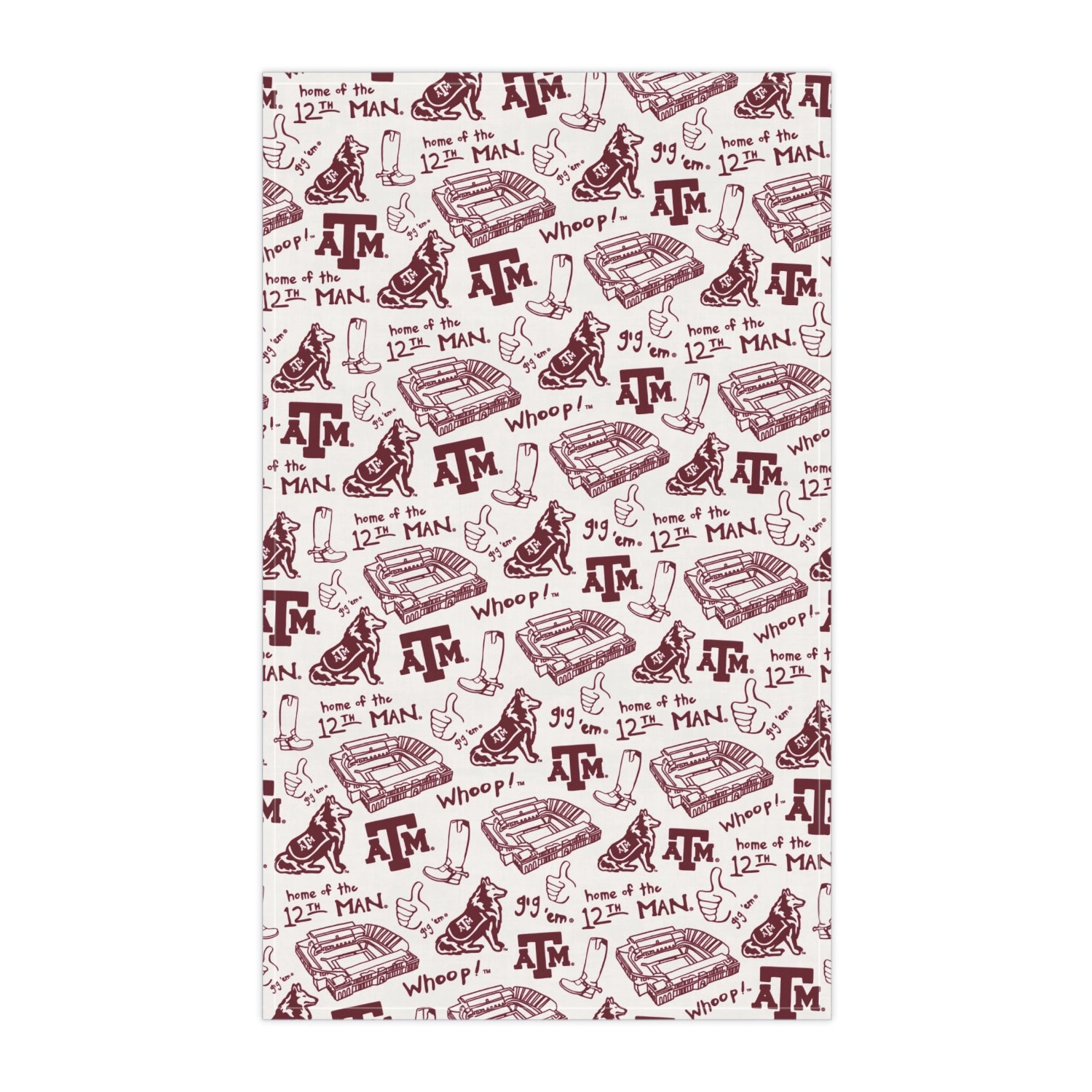 Officially licensed Texas A&M University tea towel with hand-drawn campus illustrations